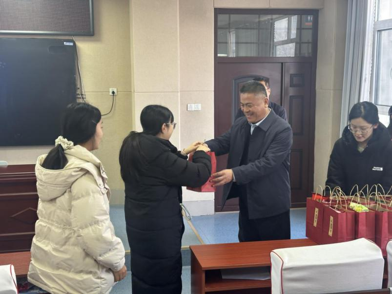 交流环节结束后,学院领导化身“暖心护航员”,将一份份暖心包送到学生代表手中。暖心包经学院细致筹备,两颗橙子寓意“心想事成、硕果累累”,一包薯片寄托“乐事相伴、前程无忧”,蛋白棒作为“能量补给、全力冲刺”,旺仔奶糖则象征“甜蜜相伴、研途圆满”。这份兼具实用与心意的礼物,承载着学院对学子们真挚的关怀与美好的祝愿。
