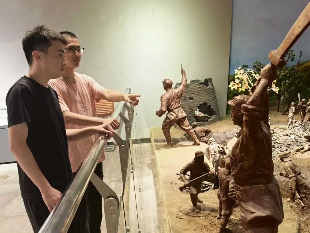 实践队走进滕州市烈士陵园,驻足“烽火滕州”主题展,仔细观看历史照片、武器实物与场景复原资料,系统梳理并认真记录了滕州地区抗战时期的游击斗争史和解放战争故事。