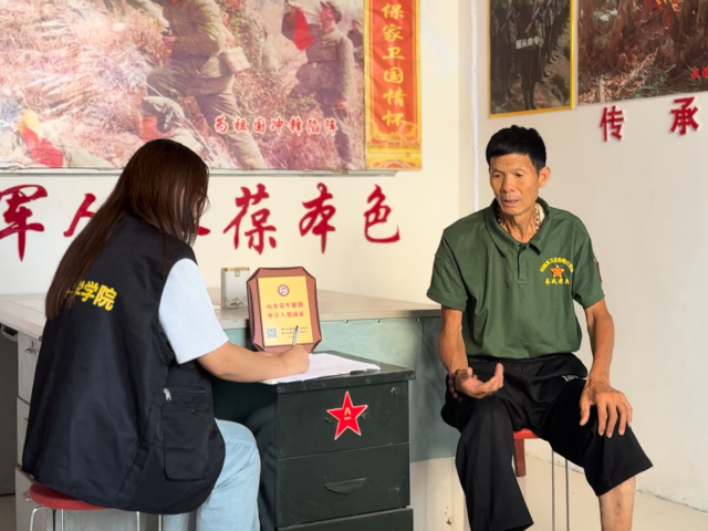 实践队在退役军人事务局的帮助下,先后赴枣庄市薛城区临城、常庄街道以及山亭区水泉镇,采访对越自卫反击战退役军人褚衍民、张建文以及抗美援越战争退役军人任守童等,队员们认真聆听他们在越南丛林冲锋陷阵的岁月,感受他们在极端环境下凭借钢铁信念迎难而上的英勇无畏与家国情怀。
