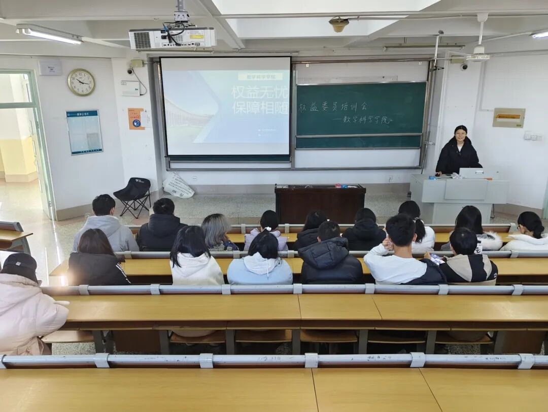 为进一步明确权益委员职责边界,提升权益服务工作的专业性与高效性,12月14日,喷水 于11号教学楼C307教室举办“权益无忧,保障相随”权益委员培训会,本次培训会2024级和2025级各班权益委员参加。