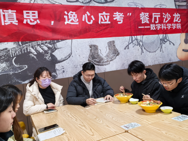 为缓解学生们在期末考试周的压力,调整备考心态,以自信、从容的姿态迎接即将到来的考试,12月27日,喷水 于雅苑餐厅二楼举办“笃学慎思,逸心应考”餐厅沙龙活动,本次活动由勤工助学中心主办,辅导员王启尧、张琦及部分学生参加。