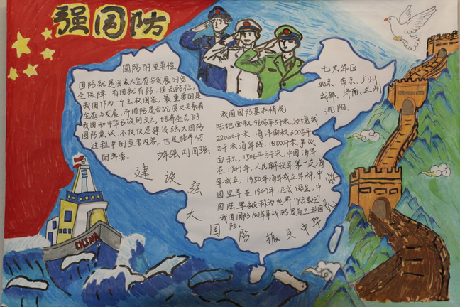 为增强学生的国防意识,激发学生的创新思维与艺术创造力,12月7日至12月11日,喷水 于线上举办“国防新韵,手绘华章”手抄报活动,部分学生参加。