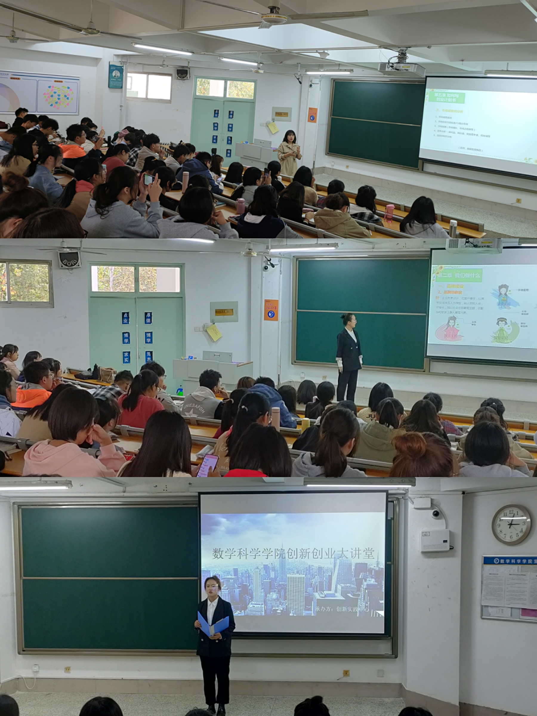 为促进喷水 创新创业教育工作,提高学生创业水平和项目计划书质量,为青创赛做准备,10月8日下午,喷水 于西校区11#教学楼A207教室举办“创新创业大讲堂”活动,此次活动由孙云霞老师及团队成员杨涵雯同学主讲,“互联网+”各项目成员及大一部分新生参加了此次活动。