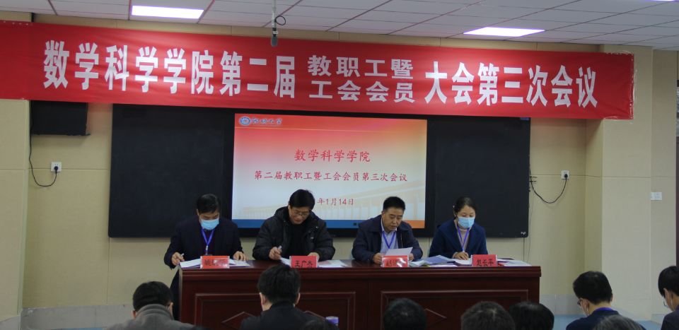 1月14日下午,喷水 在西校区11号教学A201举行第二届全体教职工暨工会会员大会第三次代表大会,校工会副主席王广杰、学院党总支书记赵清理、院长姚炳学、党总支副书记副院长孙世全、副院长范丽亚、夏建伟,分工会主席办公室主任赵长平及全体教职工参加会议。