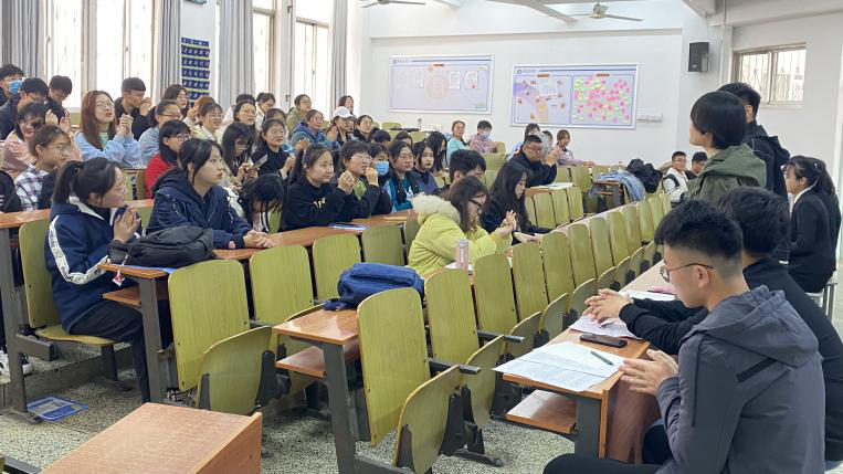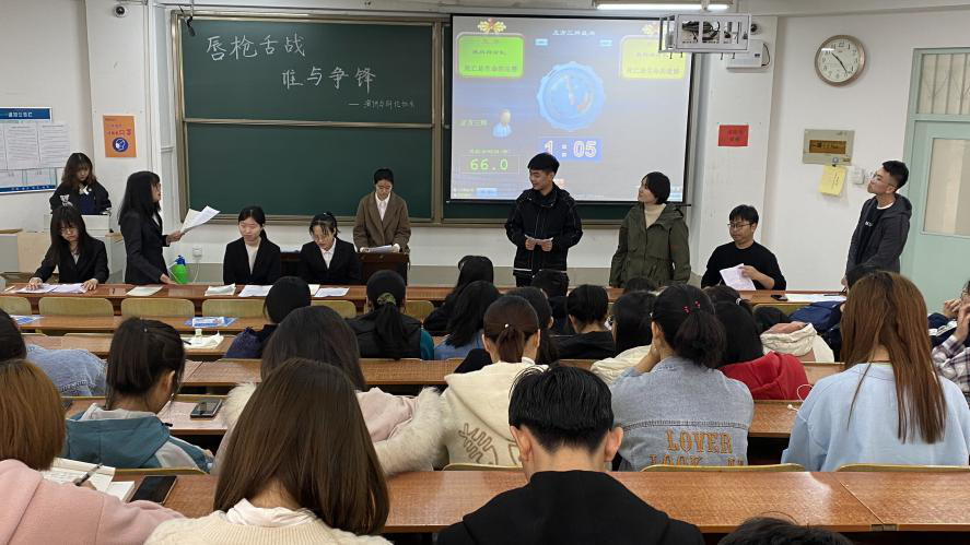 活动开始,工作人员有序安排观众进场,主席宣读开场白及比赛规则后,比赛正式开始。双方就“死亡是生命的完整还是遗憾”的问题展开辩论。正方认为“死亡是生命的完整”,而反方则持有“死亡是生命的遗憾”的观点。在开篇立论环节,双方都以充分的论据、恰当的引用亮明自己的观点,带领着观众深入辩题,辩论赛至此拉开帷幕。盘问环节,双方辩友都慷慨陈词,互不相让,双方之间进行了激烈的交锋,引来台下观众阵阵掌声。最激烈的还是自由辩论环节,双方都旁征博引,抓住对方的漏洞提出问题,场上精彩不停,台下掌声不断,将现场氛围带到了高潮。辩论最后,由双方四辩总结陈词,双方都抓住最后的机会,阐述自己的观点,本次辩论赛也在观众的阵阵掌声中宣布结束。评委针对两队表现在提出赞许的同时也指明了各自的不足,让双方辩友对辩论有了更加深刻的认识。至此,辩论赛圆满结束。