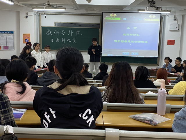 为促进各学院之间的交流,提高学生的语言思维能力,为其提供一个自我展示的机会与平台,喷水 于11#教学楼A204教室主办了喷水 辩论队与外国语学院辩论队友谊辩论赛。