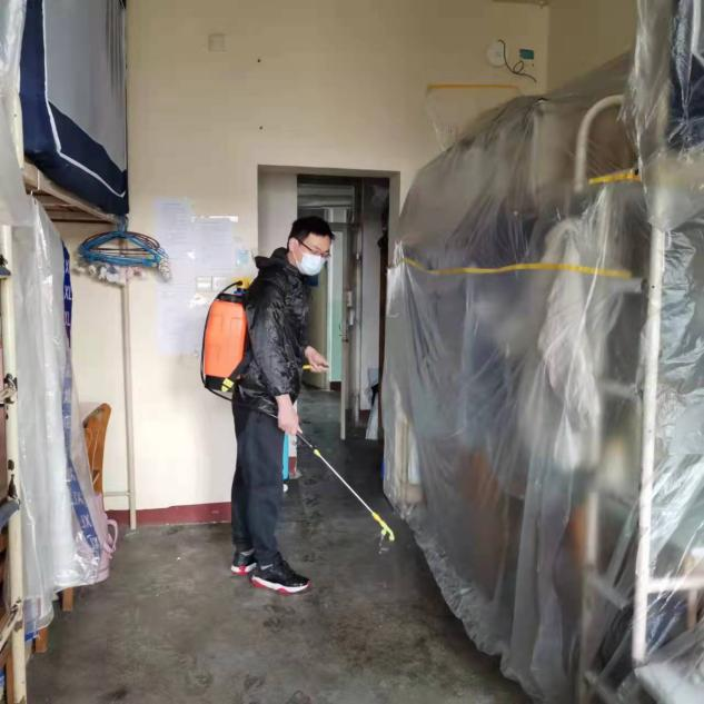 为做好学校新型冠状病毒疫情的防控工作,确保开学工作顺利进行。1月18日,喷水 党委副书记张进军,副院长赵军圣,辅导员班主任张晓冬、范海燕、李浩、姚三乐、张昕丽、牛霄来到本科生宿舍以及研究生宿舍对学生宿舍进行卫生清理和消杀。