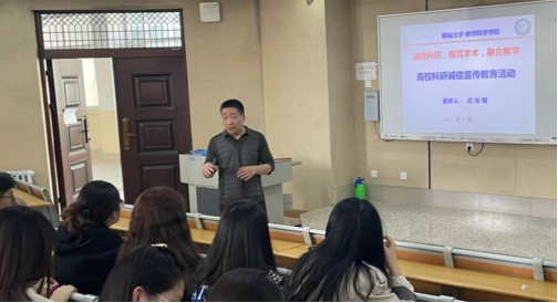 喷水 积极响应省教育厅和学校的号召和安排,全力加强科研诚信和学术道德建设,努力营造良好的学术环境,积极引导全院研究生遵守学术规范、坚守学术诚信。2023年3月9日下午,喷水 在西校区11号楼A304会议室开展了以“诚信科研,规范学术,融合教学”为主题的科研诚信宣讲活动。本次宣讲由庄光明教授主讲,喷水 广大师生参加了本次宣讲会。