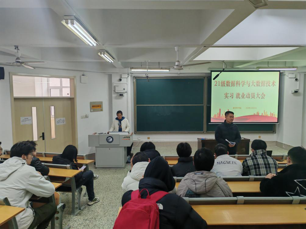 此次实习就业动员大会的成功召开,为数据科学与大数据技术专业学生的实习就业工作指明了方向,激发了学生参与实习就业工作的热情和积极性。相信在学院领导、教师的精心指导与学生的共同努力下,本次实习活动将取得丰硕成果,为学院人才培养质量提升注入新的活力。
