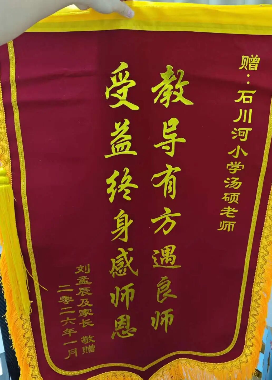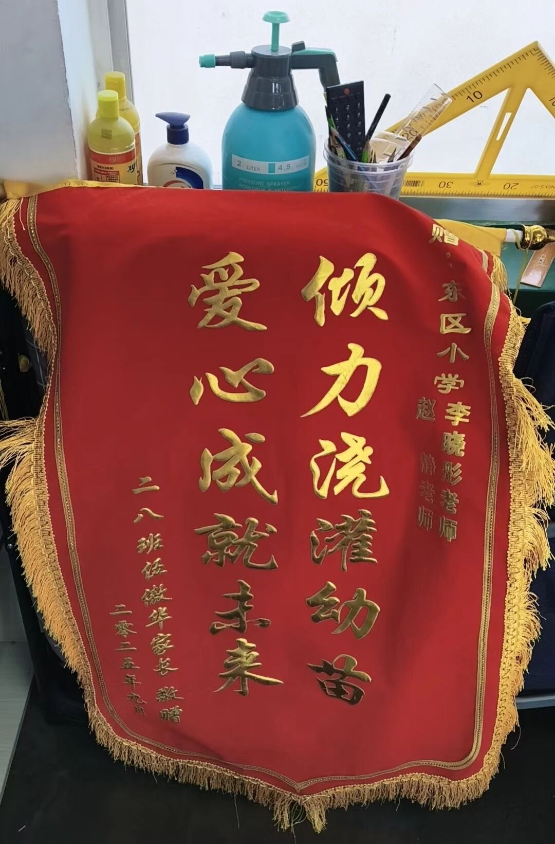 支教学校在感谢信中写道:“喷水 研究生支教团的同学们以扎实的专业素养、敬业的工作态度和无私的奉献精神,赢得了全校师生和家长的一致好评。”为表达诚挚谢意,服务学校为志愿者们举行了简朴而隆重的赠旗仪式,一面面锦旗上,“支教扶智献青春,情系边疆育桃李”“倾情支教展风采,立德树人显担当”的烫金大字,凝聚着服务地学校对志愿者们的最高褒奖。